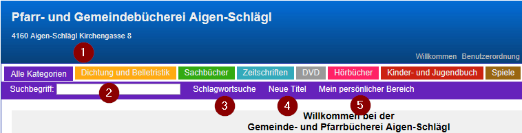 (4) - Neue Titel - zeigt Neuerscheinungen eines auswählbaren Zeitraumes.